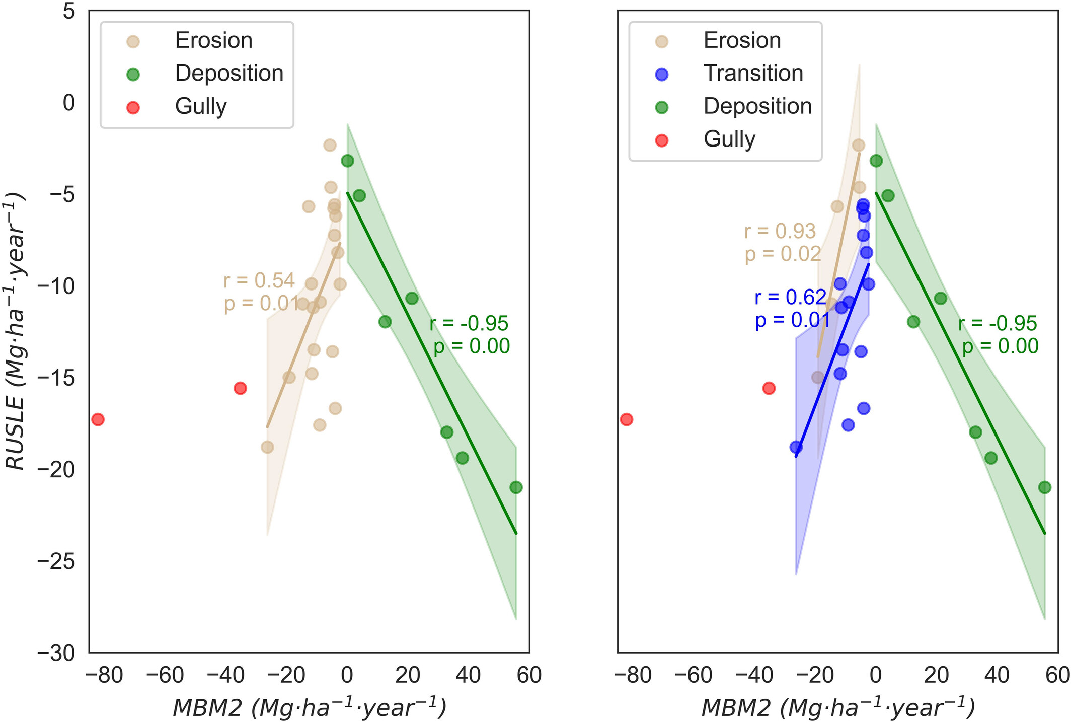 Soil erosion remains a major global concern affecting agricultural productivity and land sustainability. This study investigates the magnitude and variability of soil erosion in a long-term experiment (LTE) established in 1963 in Colonia, Uruguay, aiming to compare the performance of the 137Cs tracer technique and the RUSLE model across different crop rotations. We hypothesized that pasture inclusion into rotations reduces soil erosion compared to continuous cropping, regardless of the model. Four contrasting LTE treatments were selected: continuous cropping without fertilization, continuous cropping with fertilization, and two crop-pasture rotations with 33% or 50% time under pasture. Each plot had a size of 25 × 200 m positioned along a hillslope and was sampled at six sampling points along a transect from the hilltop towards the footslope. Soil erosion was assessed using two methods: (1) the 137Cs technique, estimating net soil redistribution based on deviations from a reference site, and (2) the RUSLE model, calibrated with national agronomic and climatic data. The 137Cs method showed erosion rates from −73 to +51 Mg ha−1 year−1, with accumulation at footslopes and highest losses in eroded gullies under unfertilized continuous cropping. RUSLE predicted losses from −1 to −20 Mg ha−1 year−1, based on sheet erosion assumptions. The comparison was limited to five sampling points where erosion processes were dominant and compatible with RUSLE assumptions. Nevertheless, results confirmed that crop-pasture rotations substantially reduced erosion and preserved soil over six decades. We conclude that integrating pastures into rotations is an effective erosion control strategy in sloping agricultural systems and helps maintain long-term productivity.